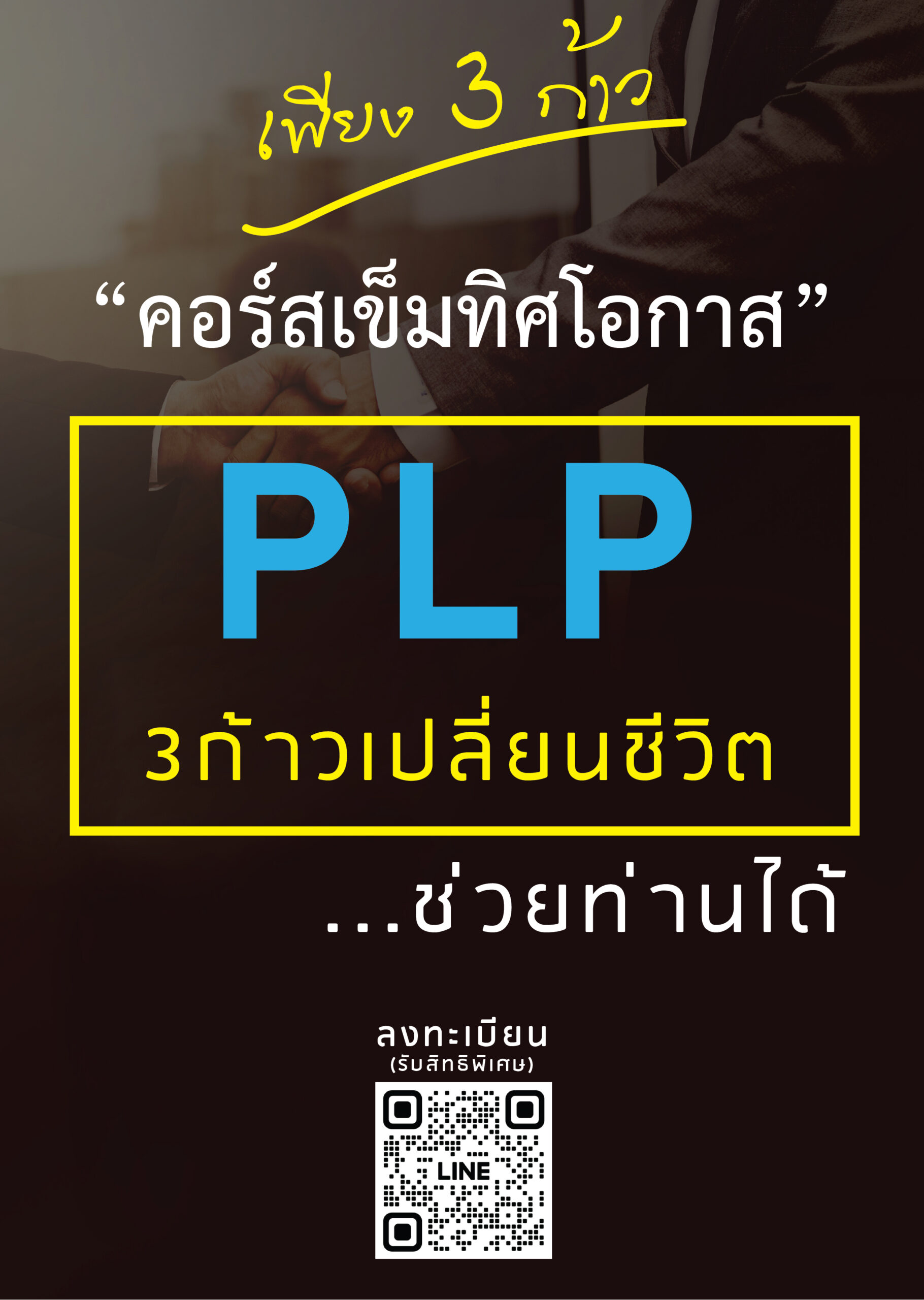 ลงทะเบียนอบรม PLP 3 ก้าวเปลี่ยนชีวิต : https://forms.gle/WHo6JCr4PvMWgU6n8