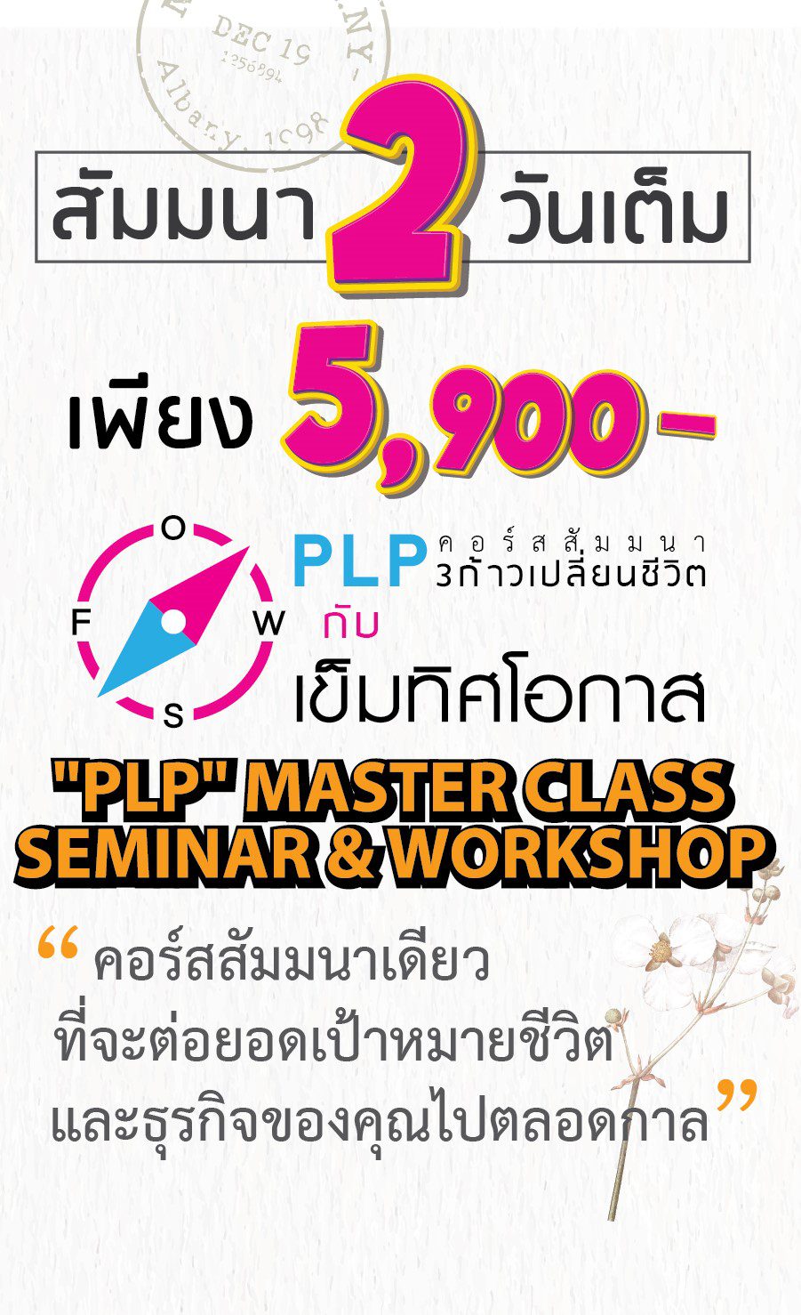ลงทะเบียนอบรม PLP 3 ก้าวเปลี่ยนชีวิต : https://forms.gle/WHo6JCr4PvMWgU6n8
